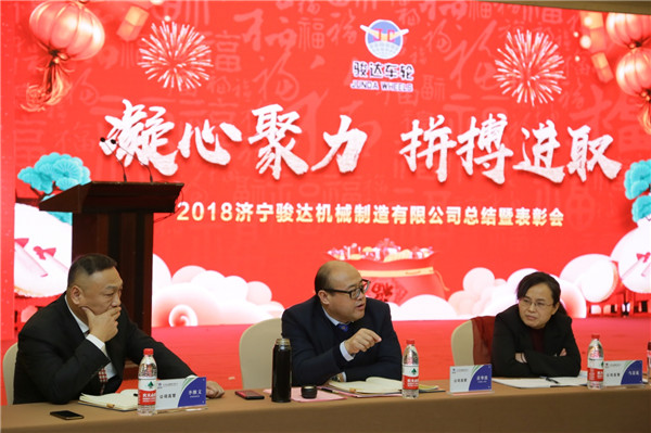 2019年1月25日,濟(jì)寧駿達(dá)機(jī)械制造有限公司2018年度總結(jié)暨表彰會(huì)在圣都國(guó)際酒店隆重召開(kāi),公司領(lǐng)導(dǎo)班子,生產(chǎn)班長(zhǎng)、段長(zhǎng)、主管及以上管理人員、全體在職黨員、受表彰的先進(jìn)個(gè)人共計(jì)100余人參加了會(huì)議。