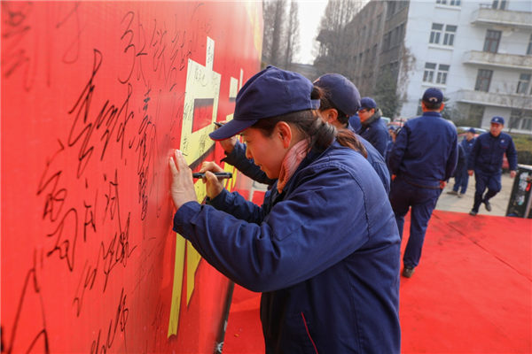 儀式最后,公司領(lǐng)導(dǎo)帶領(lǐng)全體員工共同簽名,留下各自莊重的承諾。