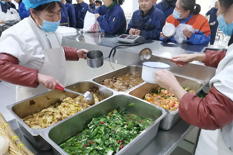 公司食堂準(zhǔn)備了可口的飯菜,為辛勤工作的員工做好后勤服務(wù)工作。